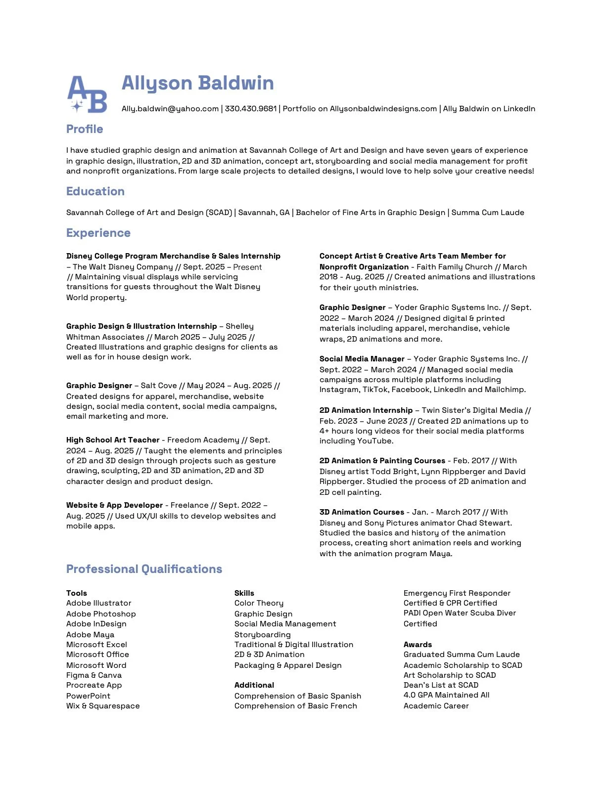 It’s my mission to inspire others with the work that I create and with the stories that I share through graphic design, animation, character design and creative writing. It’s my purpose to solve my client’s problems by producing creative solutions.