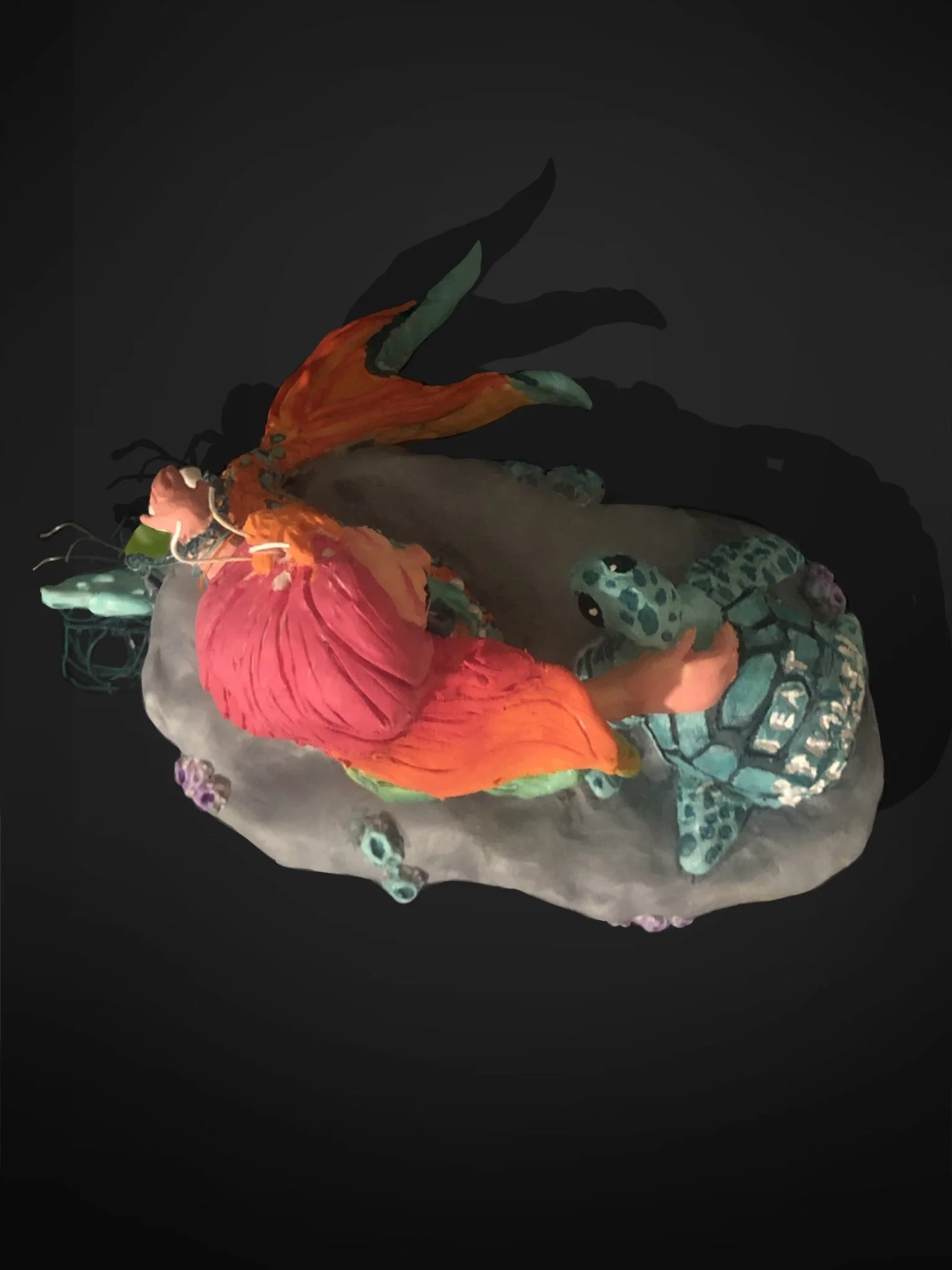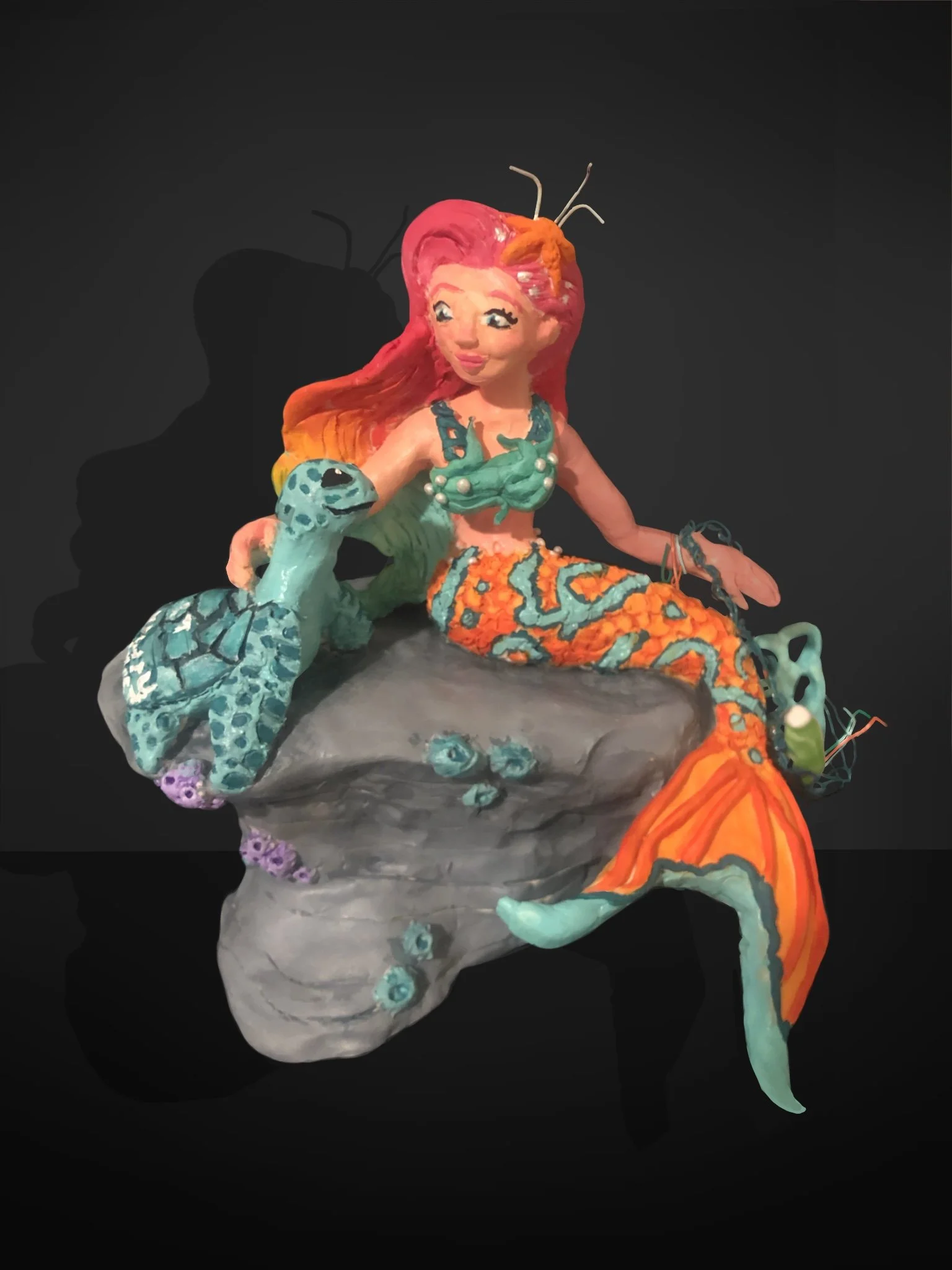This goal was accomplished with my creation of the action figure of Queen Aquaphina the mermaid. This hero advocates to save the sea turtles and fights ocean pollution with the aid of her best friend, Flipper the sea turtle.