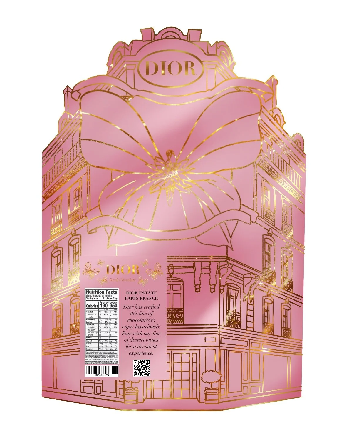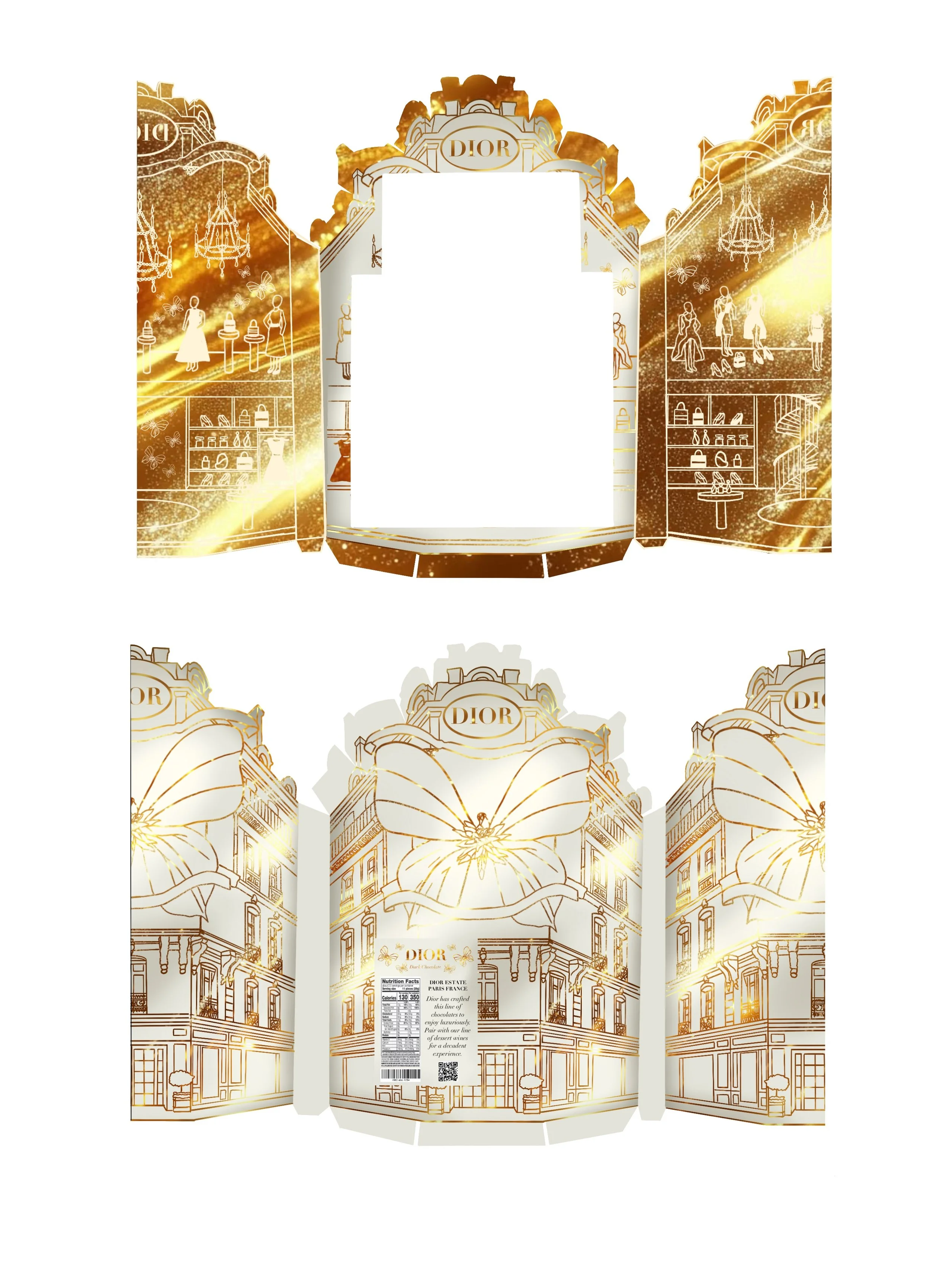 Dior is known for its elegance as a brand and is known as the standard for luxury world wide. This packaging for Dior’s new line of wine and chocolates embodies the look and feel of shopping in store by “bringing the store” to consumers. The shape and imagery of the chocolate boxes resembles Dior’s luxury store located in Paris, France. This attention to detail reflects the brand’s iconic look with pastel colors, gold detailing and the classic fonts used by Dior. This look is reflected onto the wine bottles that are perfectly paired with the three types of chocolates available. The intent of the design is to invite consumers to experience the in store experience of Dior while sipping and savoring luxury from wherever they may be.